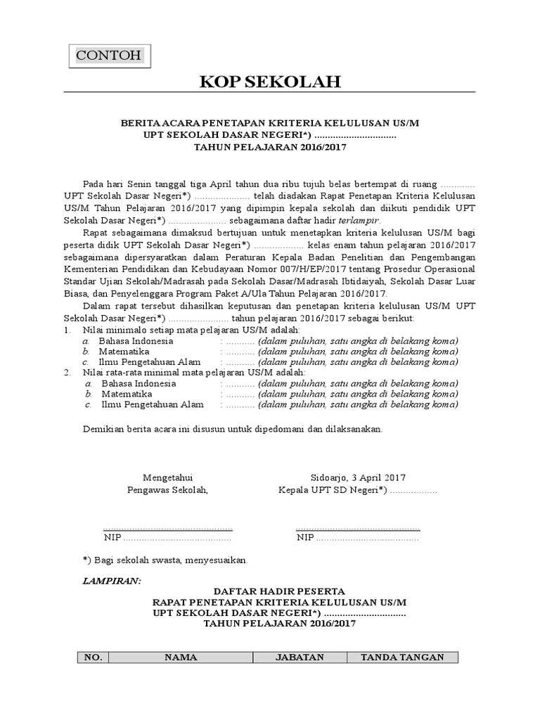 Satu tahun pelajaran tidak terasa akan berakhir, maka seperti pada tahun sebelumnya sekolah segera membuat surat keterangan kelulusan peserta didik tingkat akhir pada jenjang satuan pendidikan sd, smp, sma, dan smk. Contoh surat kelulusan dan berita acara kelulusan untuk sd/mi, smp/mts dan sma/ma, selamat pagi semuanya, semoga sehat selalu dan mendapatkan magfirrah dari tuhan yang maha kuasa. Contoh berita acara pengumuman kelulusan sekolah sd/mi 2017. Demikian contoh surat keputusan (sk) dan berita acara kelulusan peserta didik sd dan smp kelas vi, dan ix, semoga adamanfaatnya. Berita acara rapat penentuan kelulusan siswa kelas ix sekolah indonesia cairo tahun pelajaran 2019/2020 no. Contoh berita acara ujian nasional 2013 contoh ik. Demikian berita acara ini dibuat, sebagai pedoman kelulusan siswa kelas vi (enam) sd negeri 1 asemrudung untuk dapat diketahui sebagaimana mestinya. Demikian berita acara ini dibuat dengan sesungguhnya sebagai landasan program ujian sekolah dan ujian nasional sd tahun pelajaran 2016/2017 di sd negeri balongsari 7. Yang bisa digunakan untuk melengkapi semua keperluan administrasi di sekolah yang bisa digunakan untuk administrasi, administrasi guru, administrasi kelas, aplikasi, download,. Download contoh berita acara penetapan kelulusan tahun 2021 disni. Secara teknis, penentuan kelulusan harus dimusyawarahkan dalam sebuah rapat yang dihadiri oleh berbagai pihak yang terkait seperti guru. Telah menyelesaikan pendidikan di kelas 1 s.d 6 c. Kelulusan sudah tidak lagi ditentukan dengan hasil ujian nasional, dimana sekolah dapat menentukan kriteria kelulusan secara mandiri.